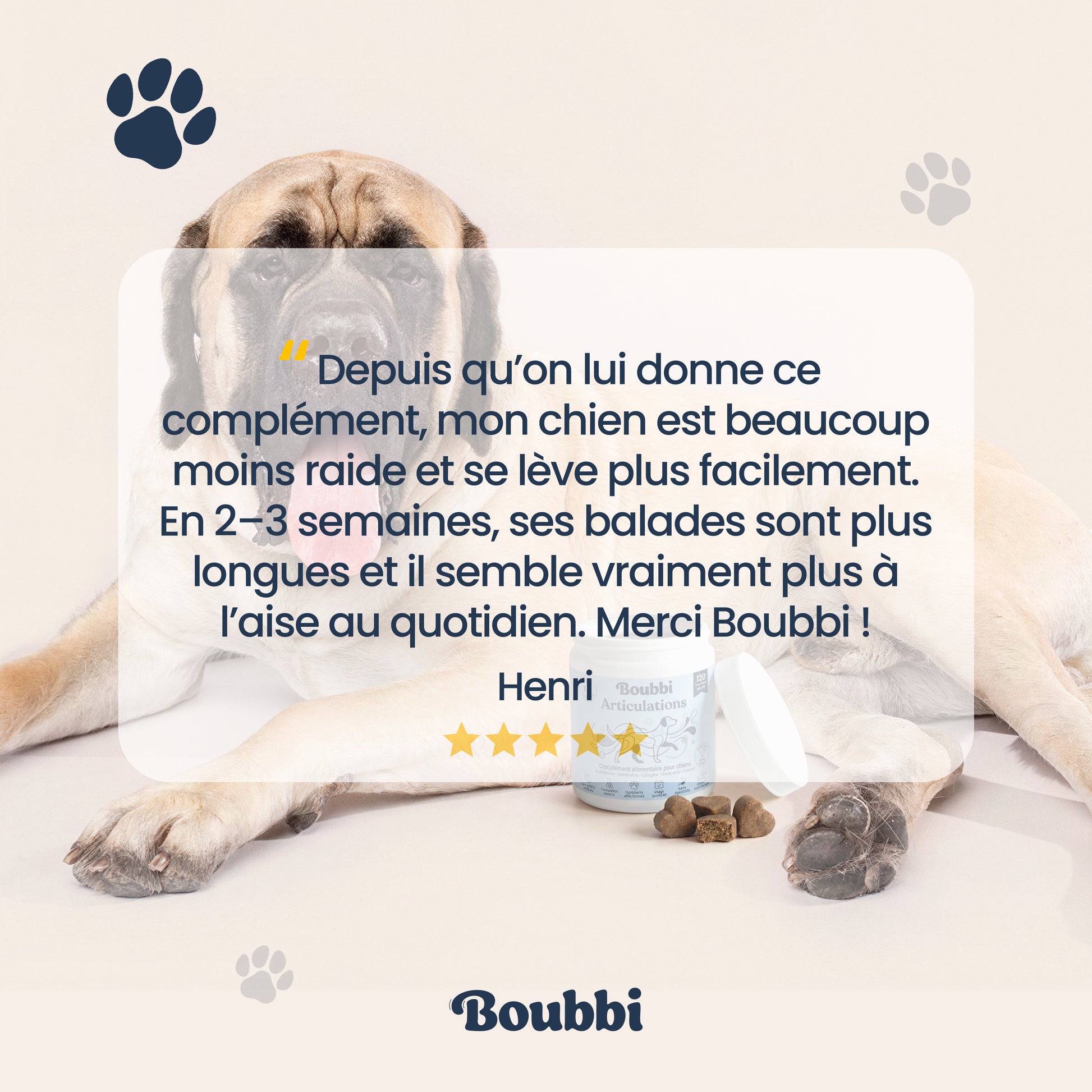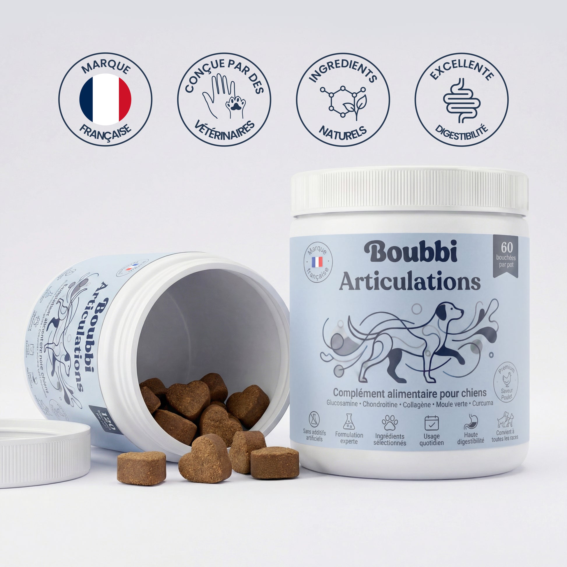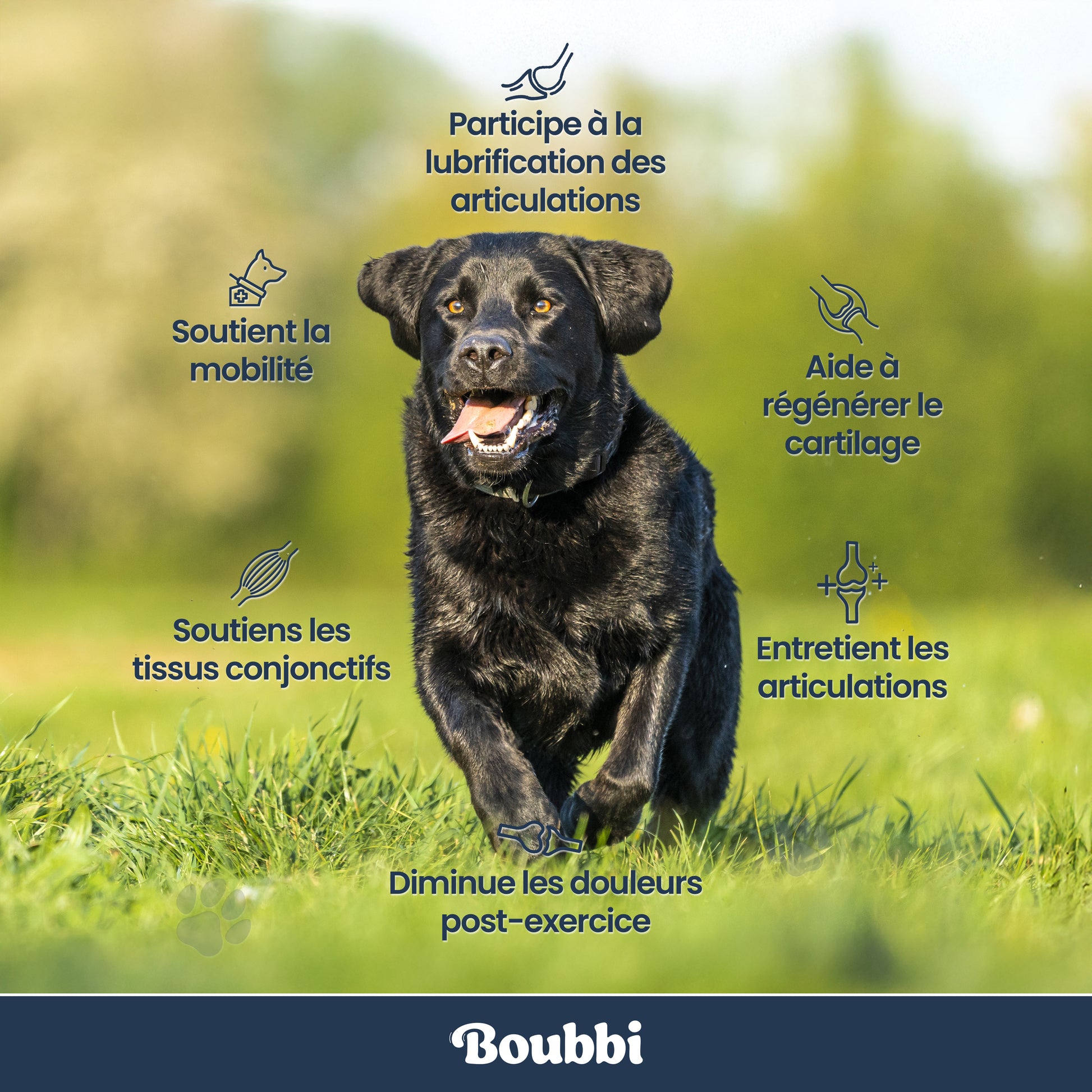 BOUBBI Articulations & Mobilité a été formulé pour soutenir le confort articulaire , préserver la souplesse et accompagner votre chien dans chacun de ses mouvements.
